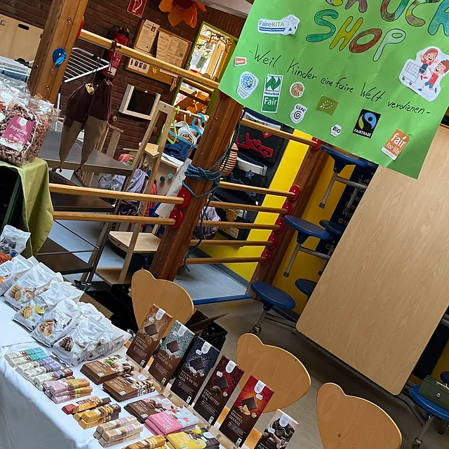 Der Fairere Kuckucksshop findet alle 2 Monate statt. Eltern haben dann die Möglichkeit, fair gehandelte Produkte bei der Abholung Ihres Kindes zu erwerben.